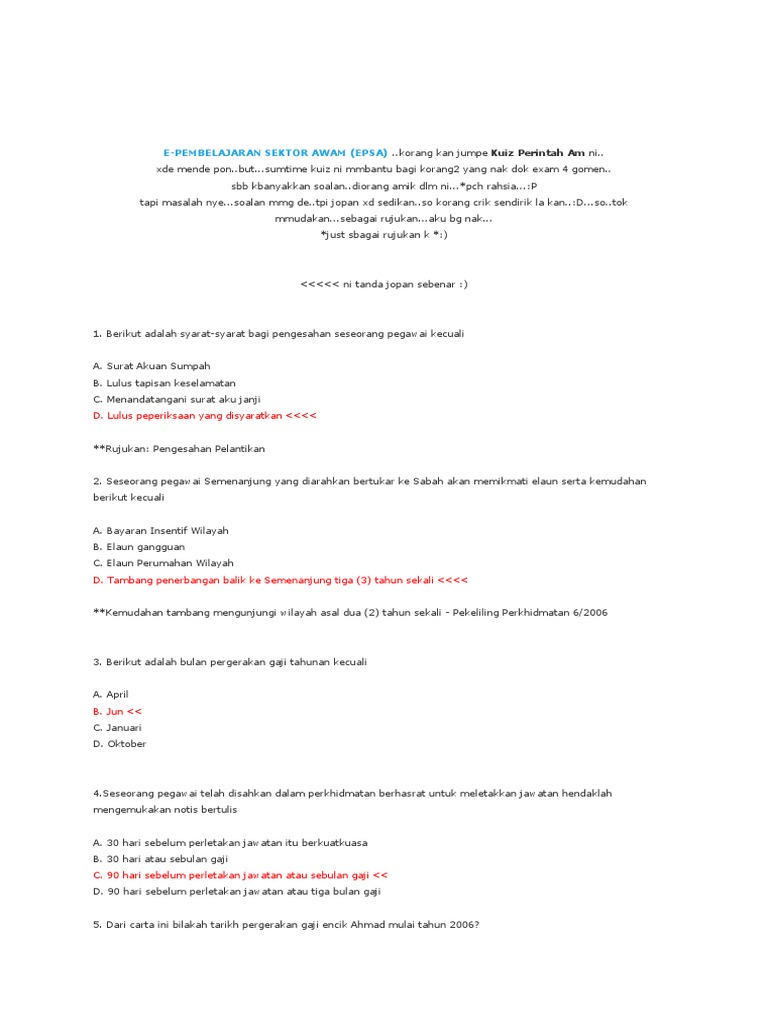 Kpsl N27 Kompilasi Soalan Bahagian I Peraturan Peraturan Pegawai Awam Perintah Am Arahan Perbendaharaan Dan 1pekeliling Perbendaharaan 1pp Soalan Soalan. Senaraikan perkara-perkara yang perlu. Com Soalan Perintah Am Dan Arahan Perbendaharaan.